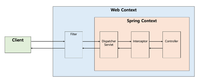 - 컨트롤러는 Root WebApplicationContext 속 Service, Repository… 등을 호출해가며 비즈니스 로직을 처리한다.
