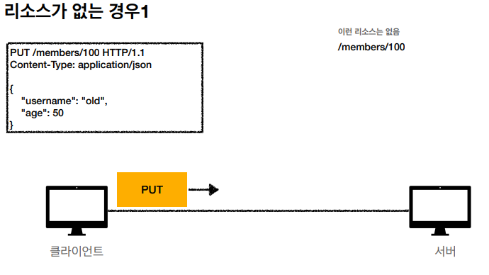 - PUT: 리소스를 대체, 해당 리소스가 없으면 생성