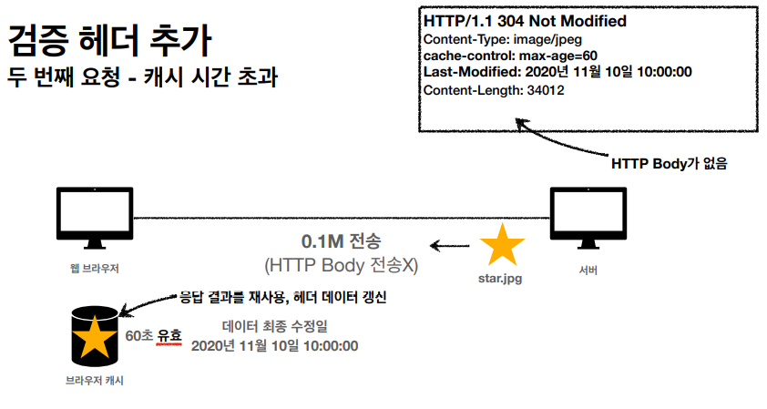 - 캐시 유효 시간이 초과해도, 서버의 데이터가 갱신되지 않으면