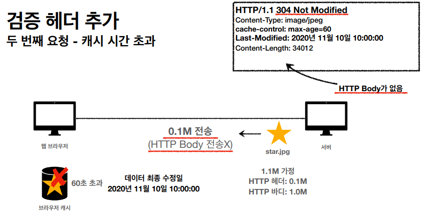 - 캐시 유효 시간이 초과해서 서버에 다시 요청하면 두가지 상황이 나타남