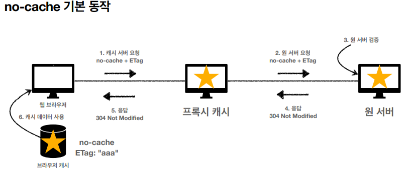 - 데이터는 캐시해도 되지만, 항상 원서버에 검증하고 사용