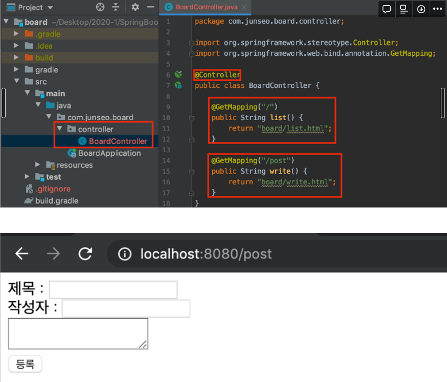 Controller에서 ‘/list’ 요청을 받았을 때, list.html로 매핑