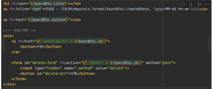 수정 버튼을 누르면 put 형식으로 ‘/post/edit/id값’으로 요청이 옴